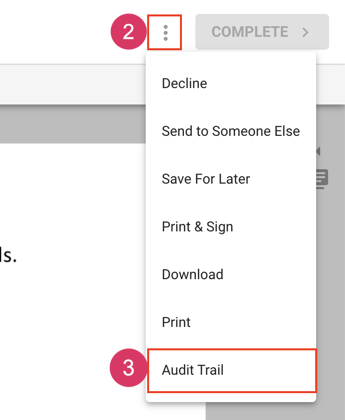 As a signer, you can access the audit trail from the signing process. The Audit Trail provides a list of the recipients and a detailed list of activities taken on a document at the time the audit trail is viewed. It will show a full history of the document and actions taken by both the sender and recipients. The audit trail can be viewed any time after the document has been sent and will update as the document proceeds to completion.